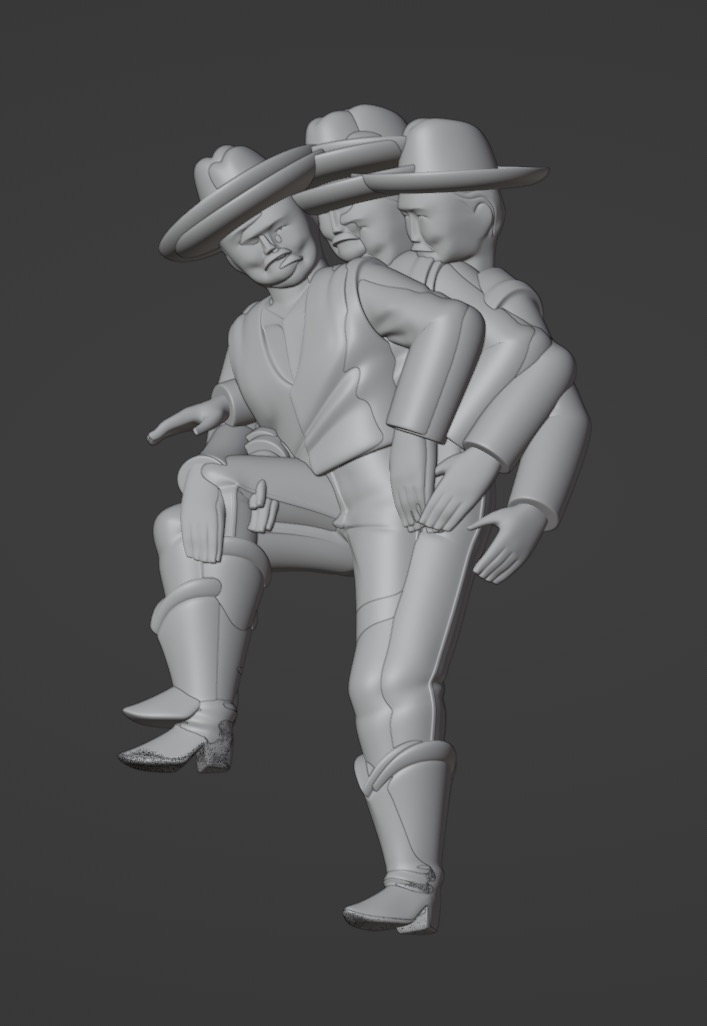 Instead of an armatured puppet, our puppets are composed of dozens of iterations of themselves, which are “replaced” every frame. George Pal popularized the technique with wooden characters in the 1930-1940s, but we do it using 3D printing. Ie.: to solely make the cowboy walk, it takes eight models.