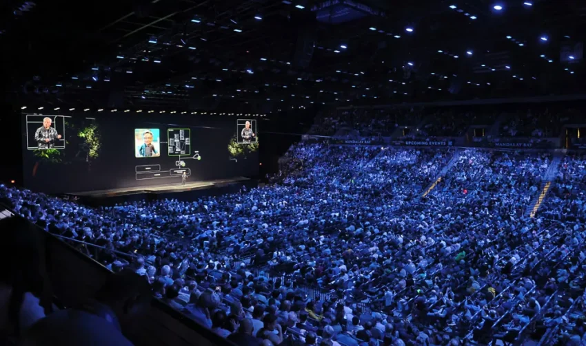 Jensen Huangr’s keynote fused AI ambition with the arena’s beer-branded irony—tech spectacle meets Vegas excess