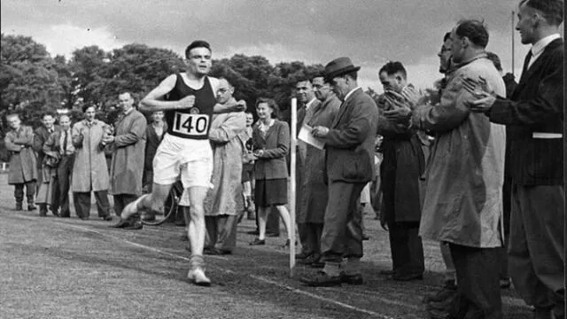 Alan Turing participating in a race in Dorking, England, 1946