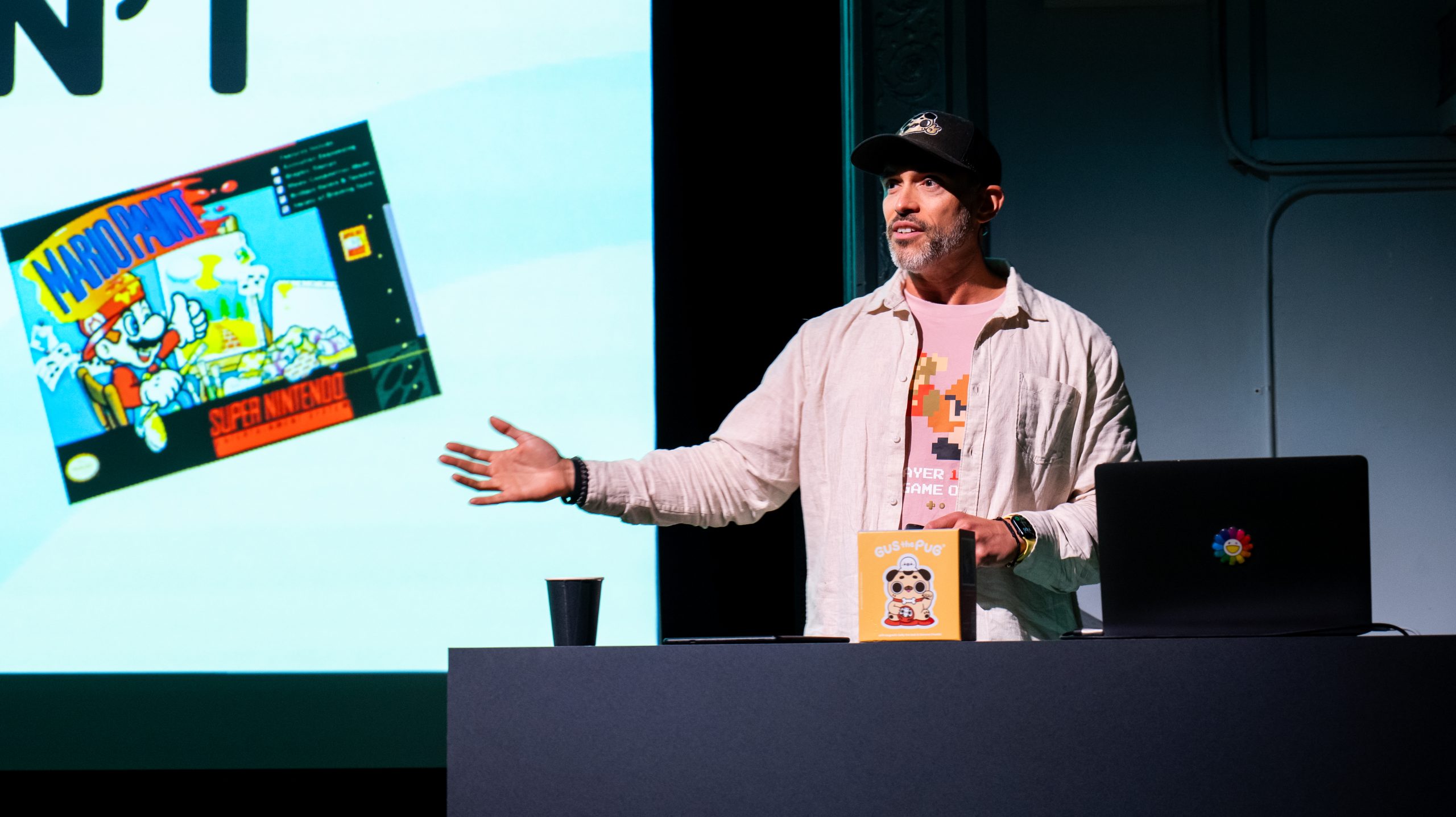 The talk opens with a joke about weight painting and quickly pivots to the real reason EJ is on stage: after 15 years of dreaming, he finally made his own vinyl toy, a tiny pug inspired by his real-life best friend, Gus. But this achievement didn’t come easy. Anxiety, grief, and imposter syndrome nearly shut him down. What brought him back to life was the decision to create anyway, not for likes or followers, but out of love.