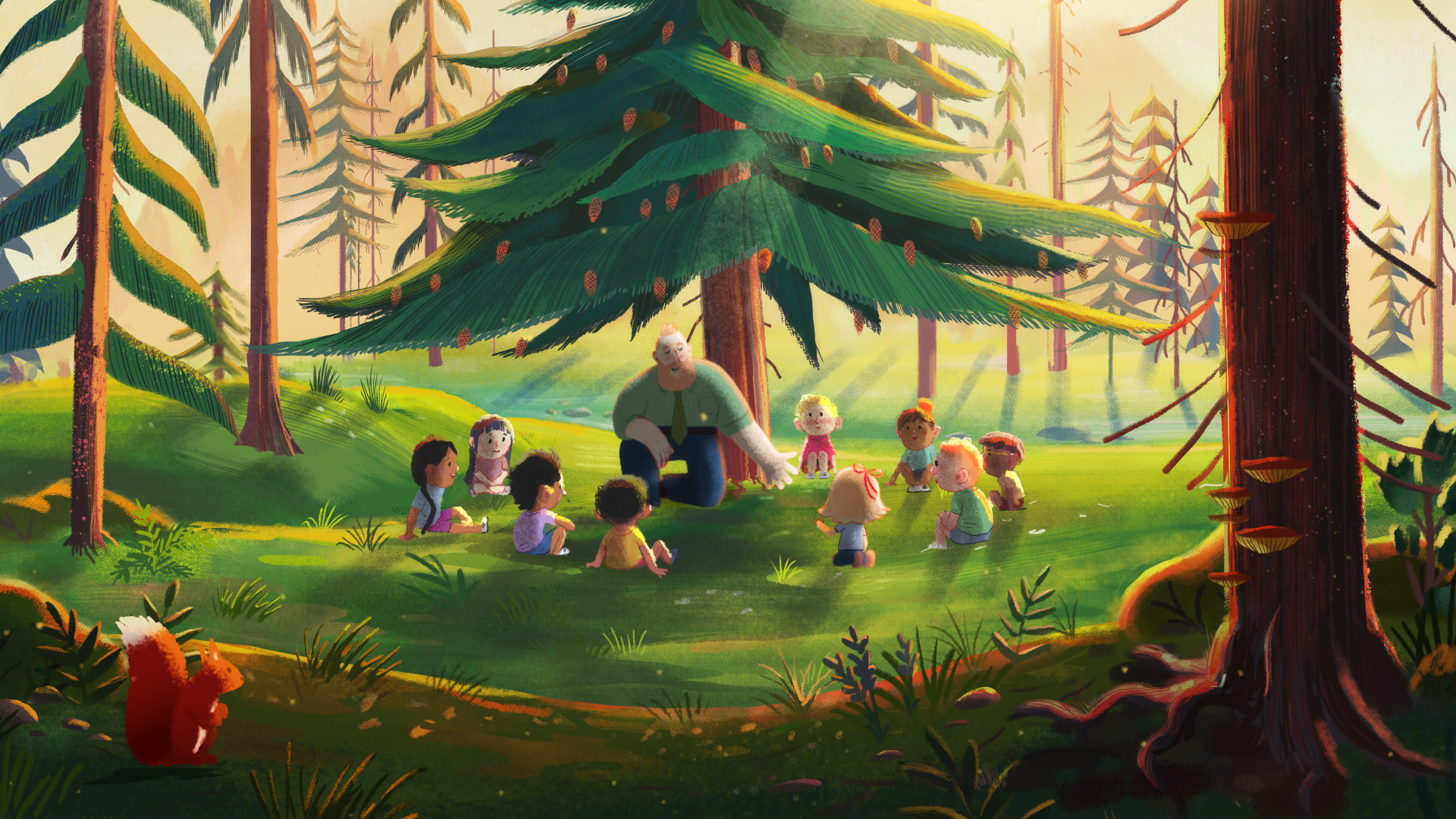 The story follows a young Julia through her school career as her teacher introduces the class to ecology and sustainability. Over the years, Mr Green nurtures Julia’s fascination with nature until the day he retires, leaving Julia forlorn. On parting, however, Mr Green gives Julia a single pinecone. She may have lost her favourite teacher, but she now has the chance to put his teachings into practice by growing her very own pine tree.