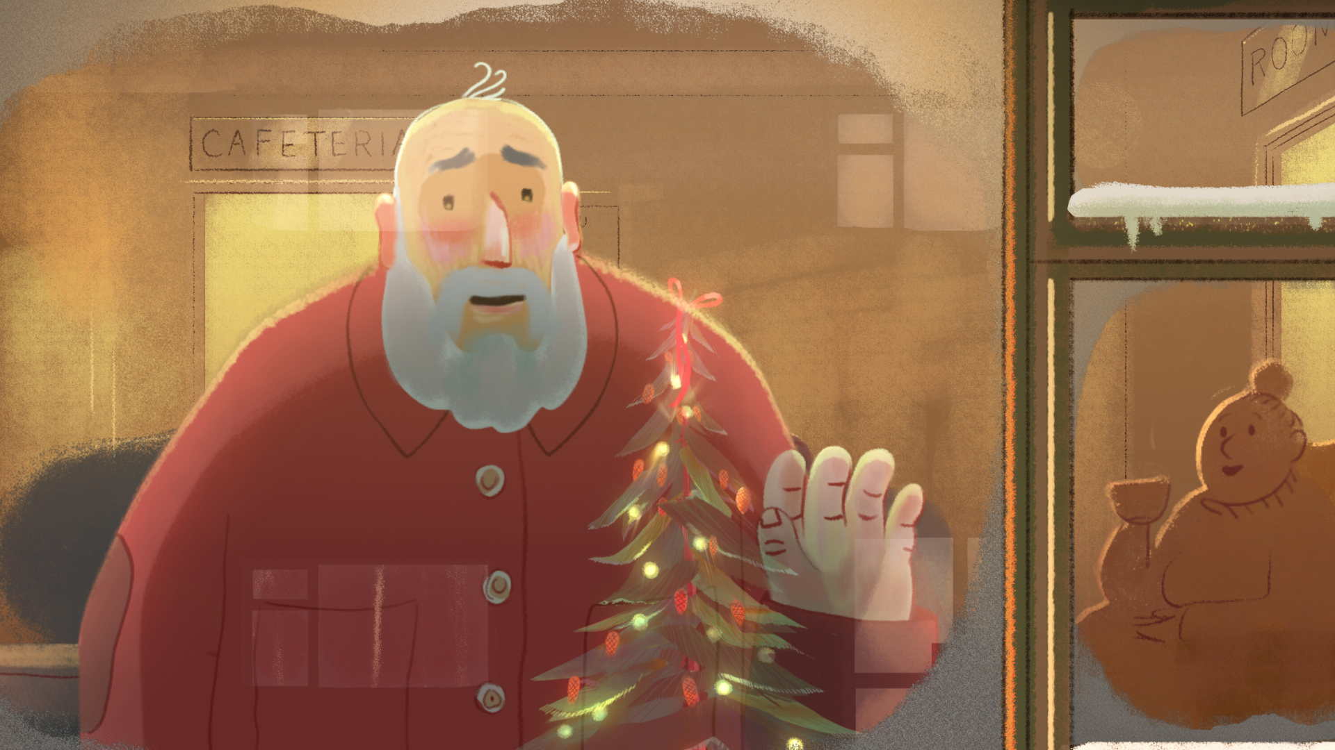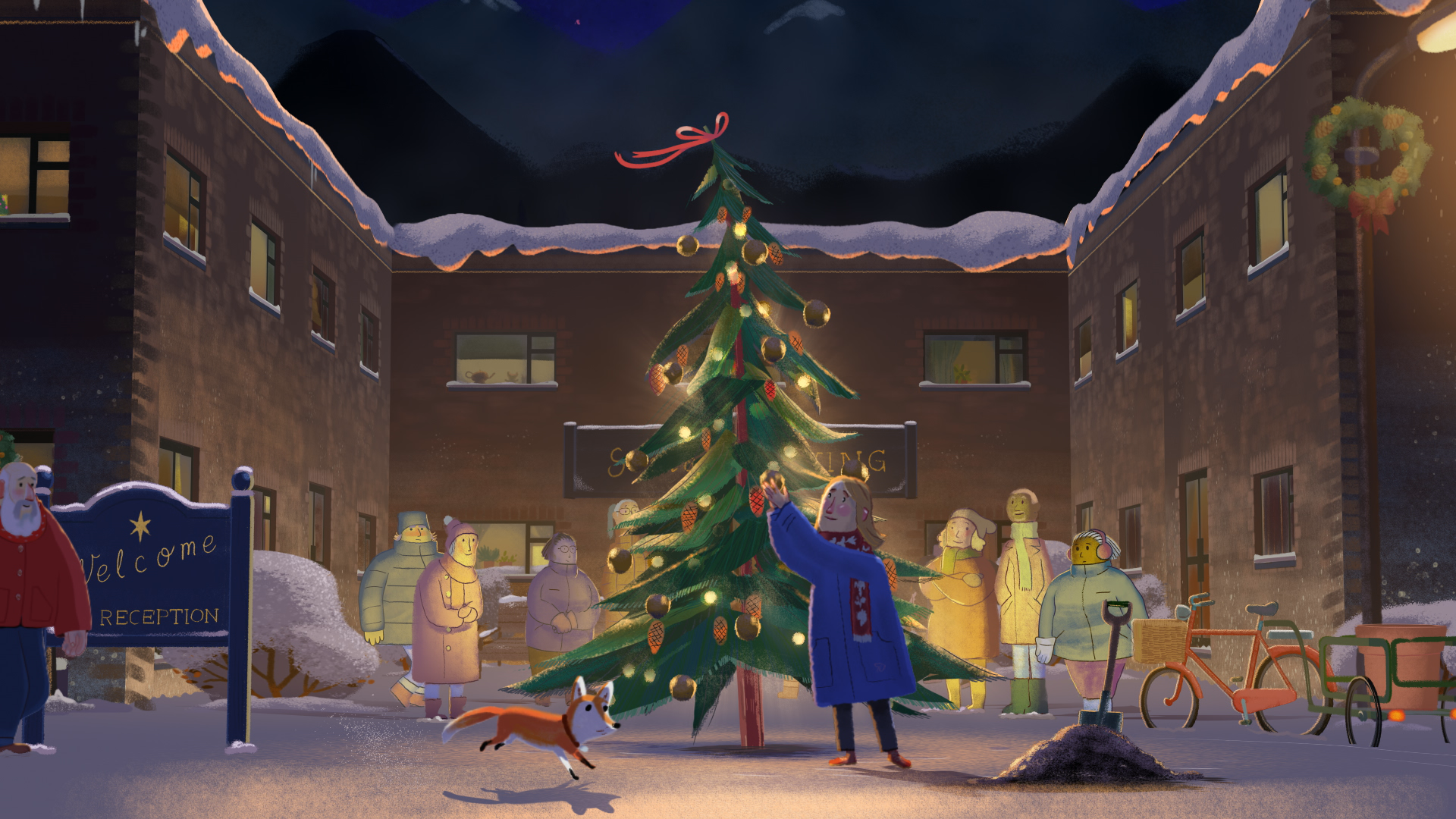The years pass and Julia matures alongside her tree. Eventually we see a grown Julia setting off on her bike on a cold winter afternoon. As she cycles past a care home, she spots a familiar face. Julia decides it is time to repay the kindness she received all those years ago from her favourite teacher and to give something back to her community. In the closing scene, Julia is reunited with Mr Green in front of a new addition to the care home’s garden: Julia’s mature and fully decorated Christmas tree.