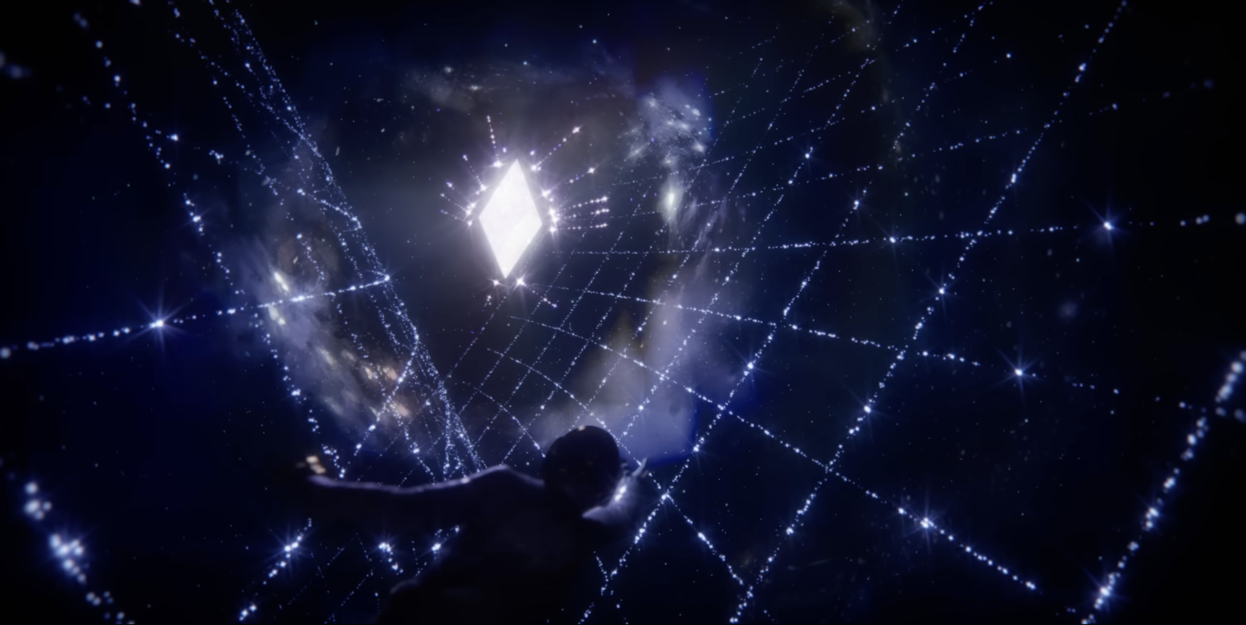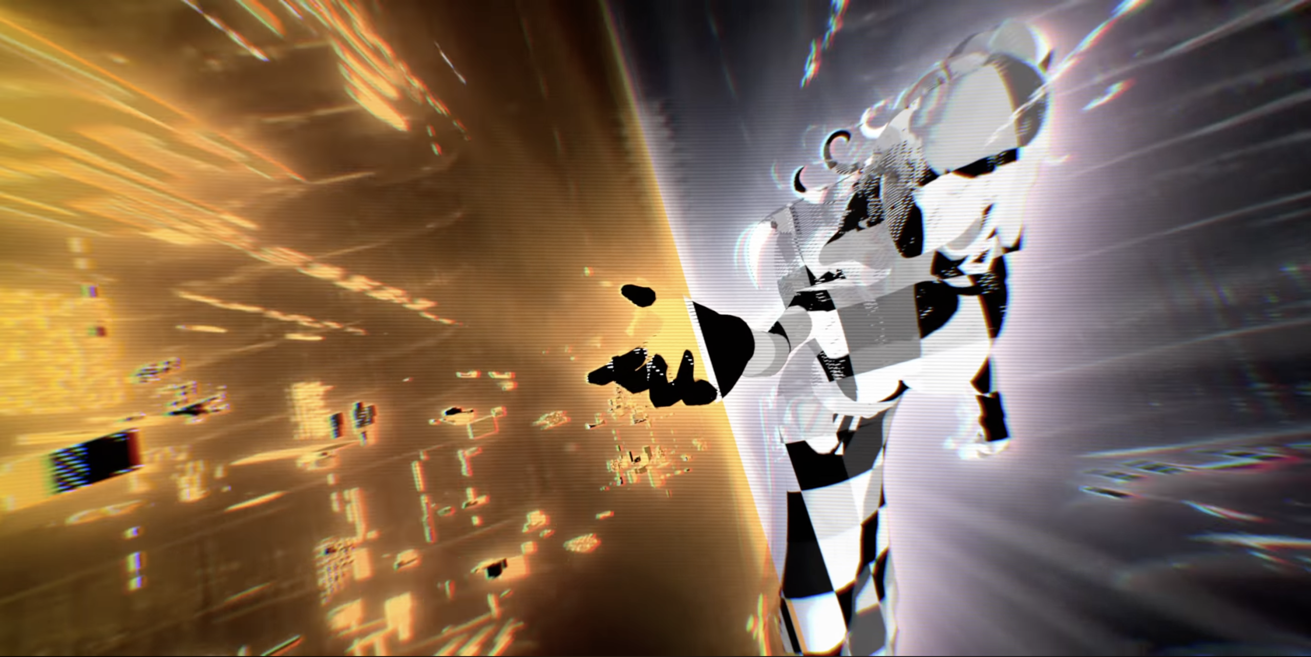 In the opening sequence of the game, players are launched through a portal into a kaleidoscopic audio-visual odyssey before arriving in the Daft Punk Experience. The “Contact” video follows the two Daft Punk robots as they embark on that same journey themselves – drifting through space toward a mysterious flashing signal that pulls them into an emotional, high-intensity voyage filled with nods to moments across their career.