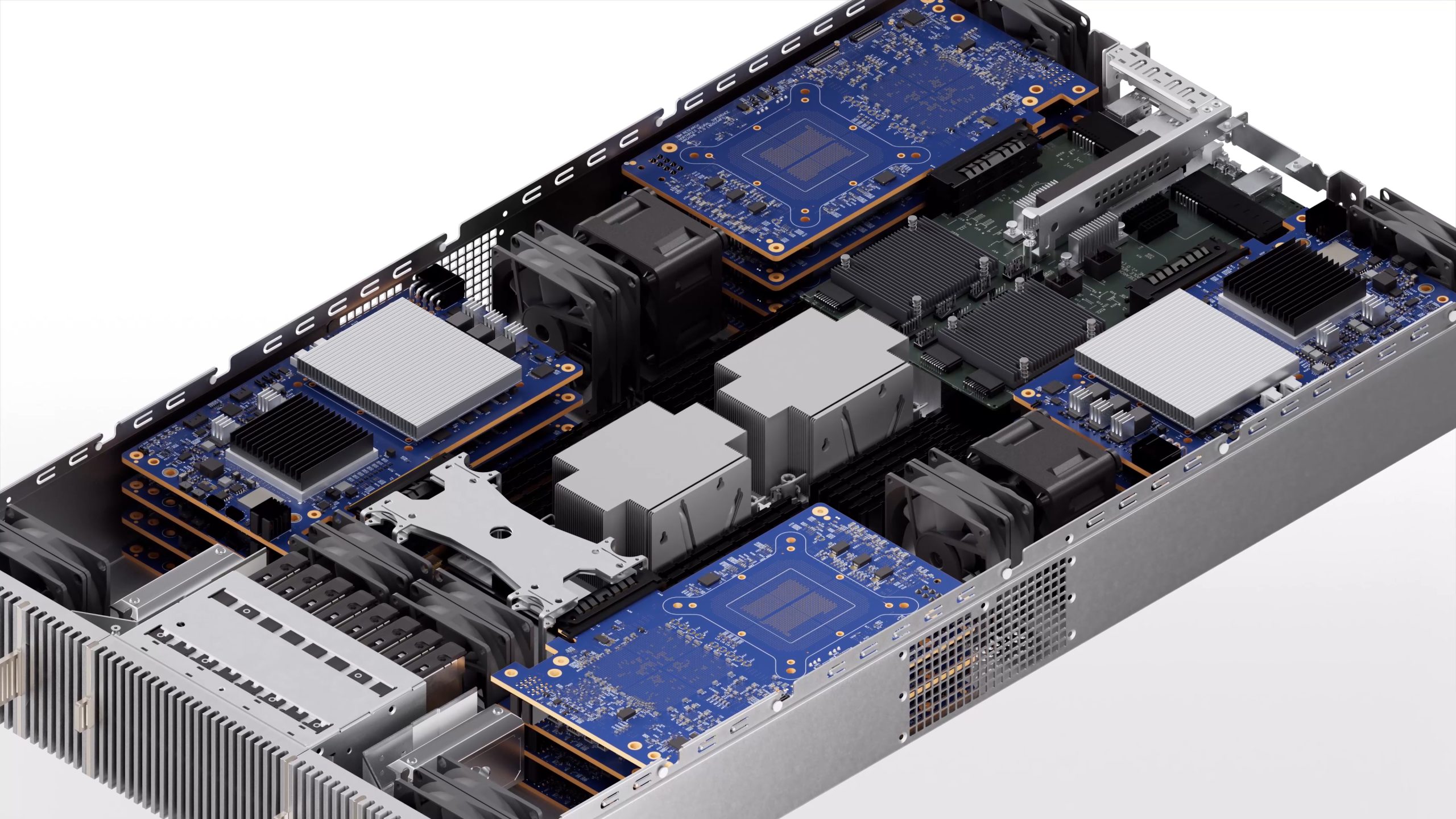 Designed by Map Project Office, the server units embody a refined minimalist language. Decisions around colour, material, finish, and form were central to the design process. By integrating real-world material samples and prototypes, Found developed a digital representation of the chip, cards, and server units that closely mirrors the manufacturing process, bringing accuracy and tactility to the film.