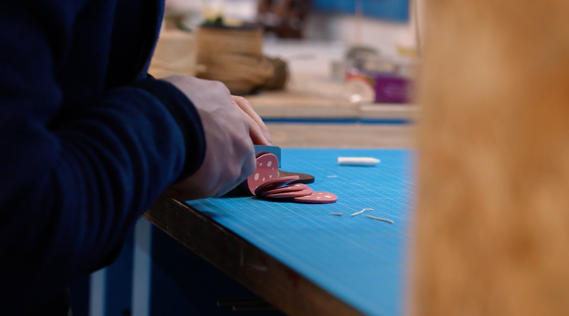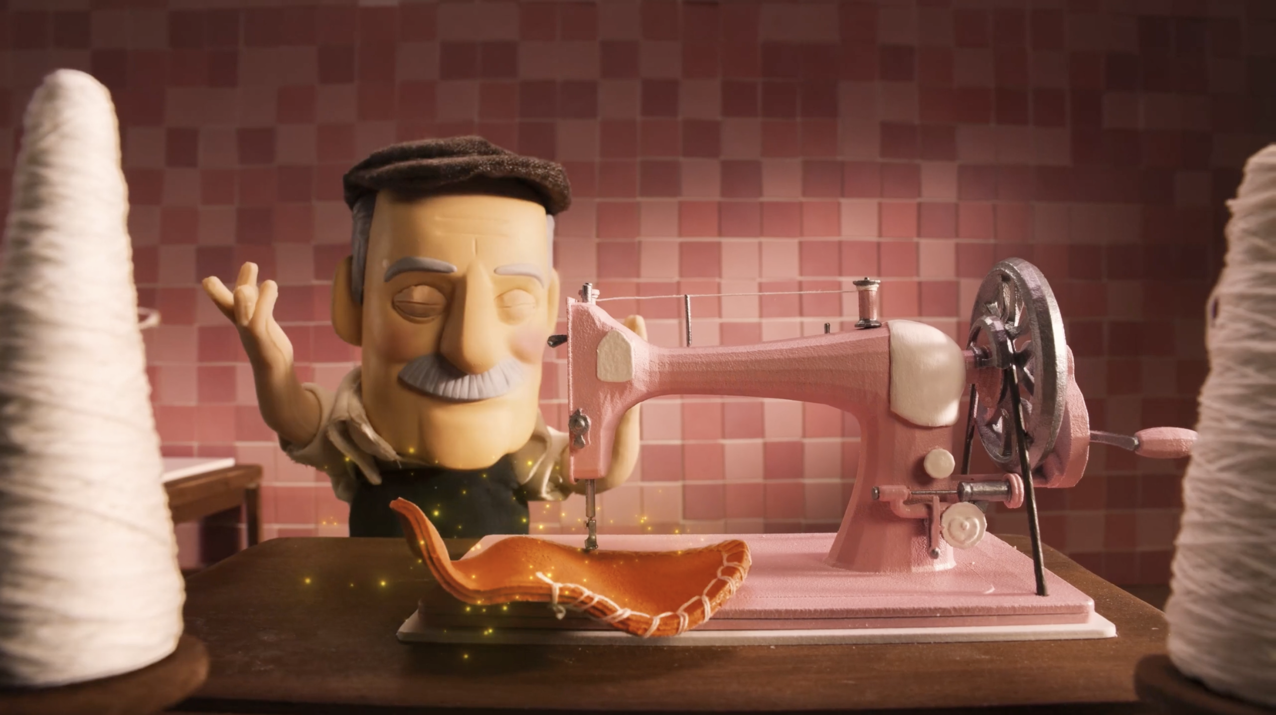 Handmade sets, physical puppets and frame-by-frame animation, using stop motion as a narrative language.