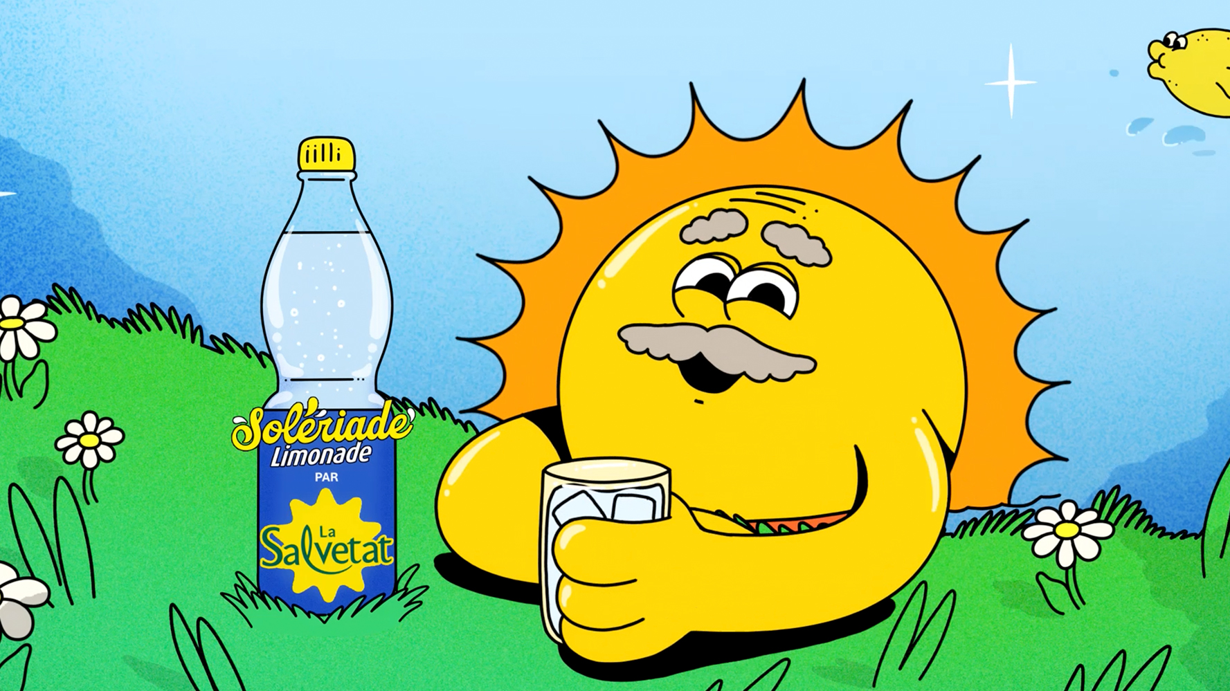 A sunny and sparkling commercial for Solériade lemonade, revisiting the aesthetics of 1960s–70s cartoons.