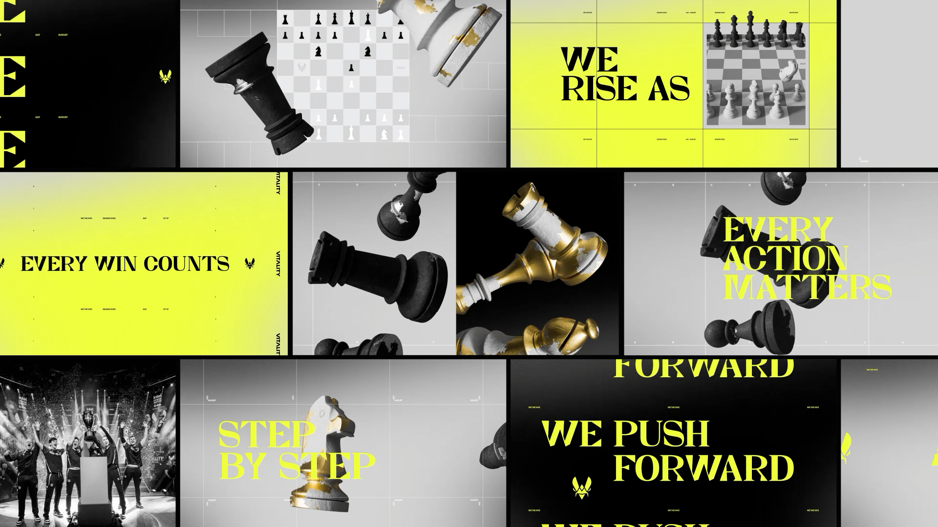 As the game unfolds, Vitality’s different disciplines appear as pieces on the board, each move bringing the match closer to its final outcome. The progression of the match structures the narrative, gradually increasing tension toward a decisive finale.